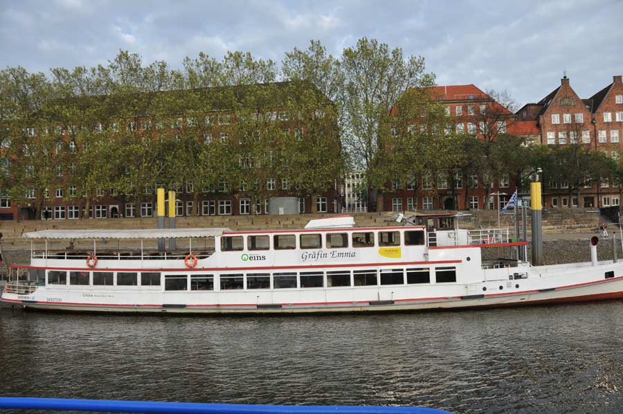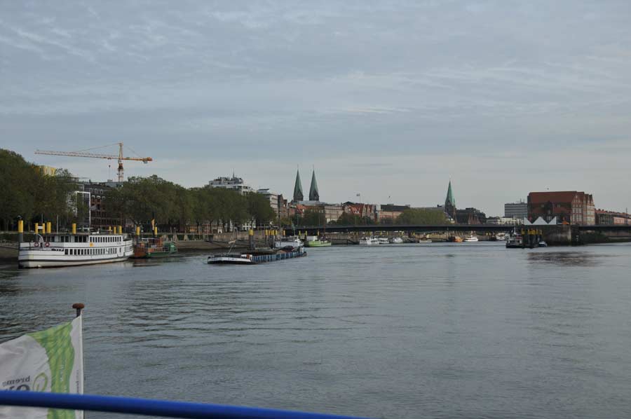 We passed the well-known Pannekoekschip "Admiral Nelson", the Weserburg, which today houses the Museum of Modern Art, drove under the Stephanie Bridge, then along the Downtown Terraces and finally reached the commercial ports, including the well-known timber port where the import timber was loaded be landed by rail or truck or for further processing in local companies.