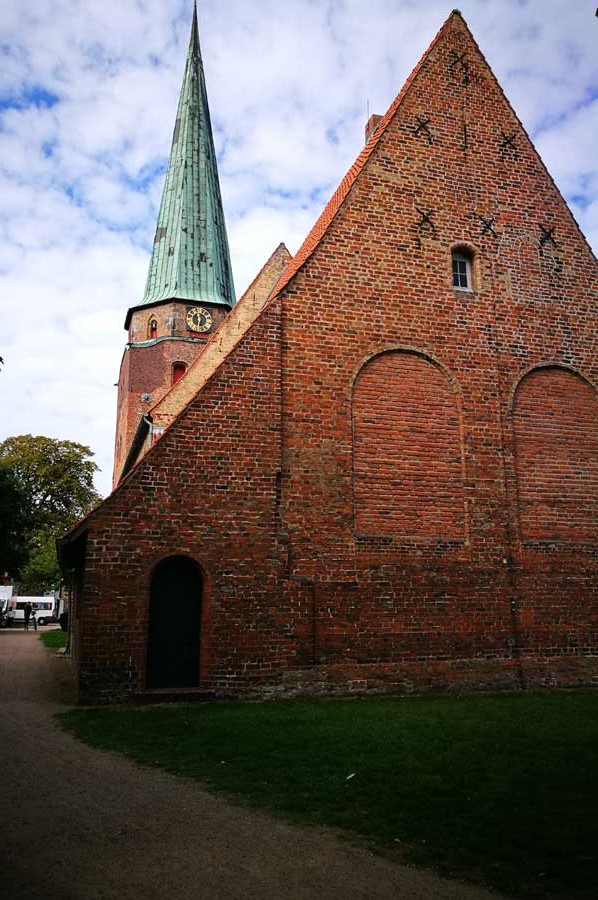 After a few meters into the pedestrian area, you will find the church of St. Lawrence, built in the second half of the 16th century in the existing form, which is mentioned indirectly for the first time in a papal document of May 11, 1235. Pope Gregory IX. In it some clerics from Schwerin with the mediation of a dispute between the Lübeck bishop Johann I and the city of Lübeck are commissioned.