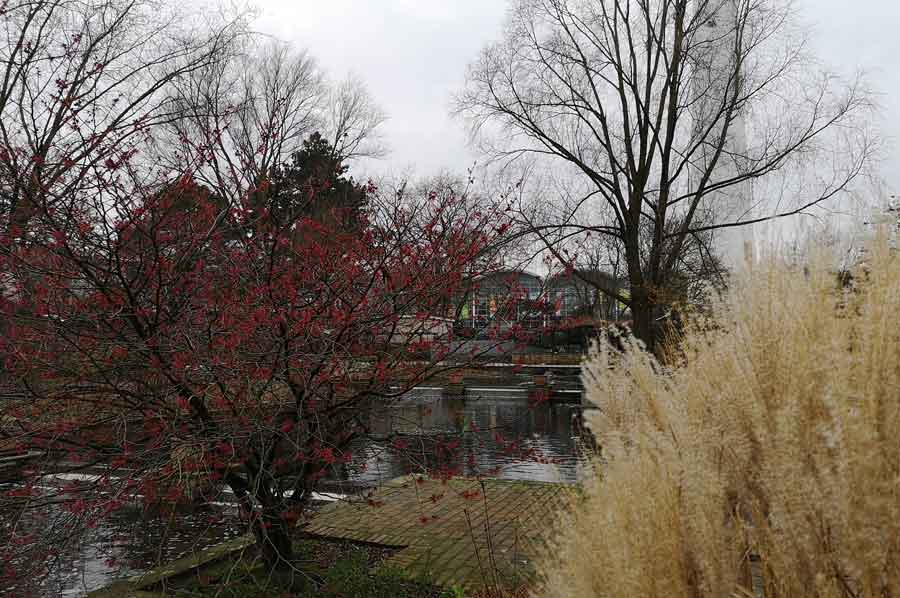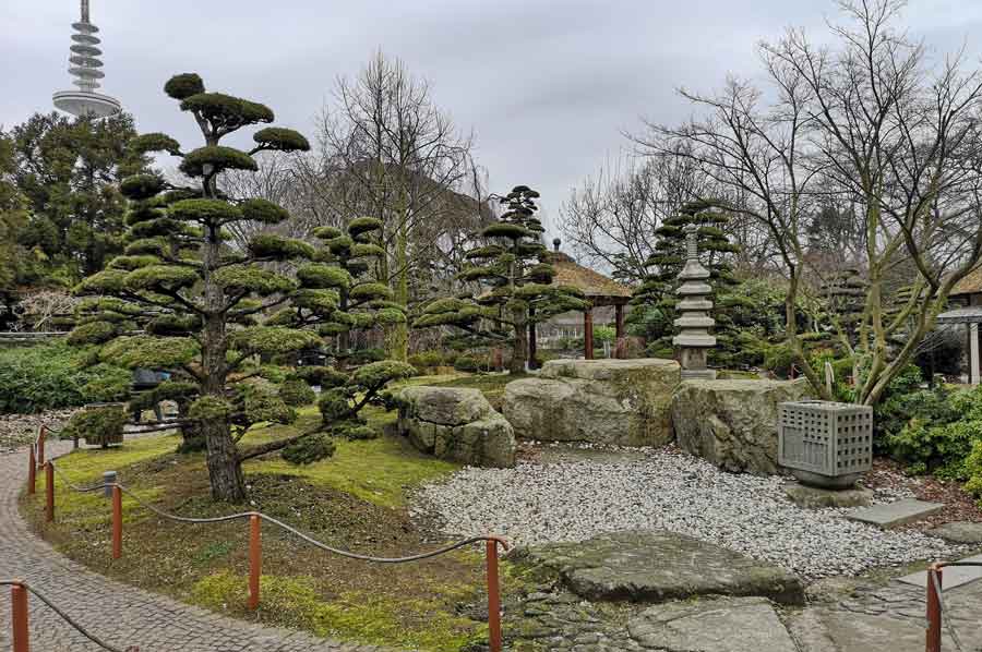 And despite the murky grey at that time and despite its strict design, the Japanese garden blends unobtrusively into the park landscape. Together with the Japanese landscape garden on the other side of the exhibition hall, it shapes a central area of Planten un Blomen. We were surprised to find many blooming flowers.