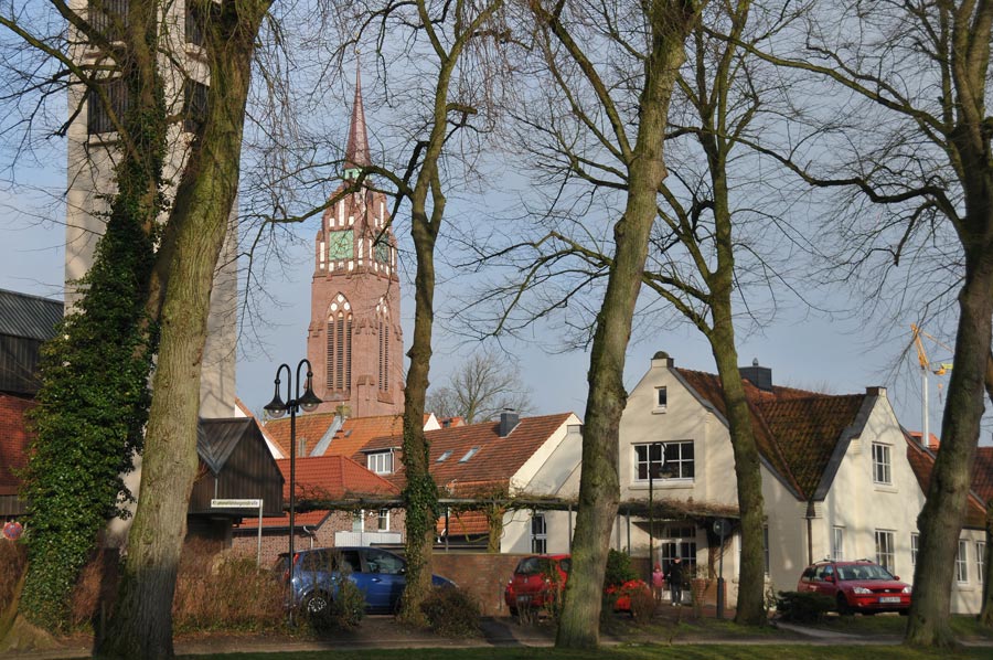 Jever - Regardless from which side of the old town of Jever you are approaching, always the bell tower as the second tallest building in town is in the center of the image.
