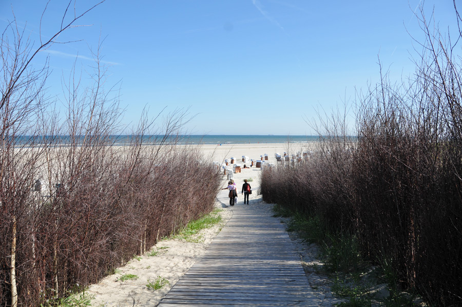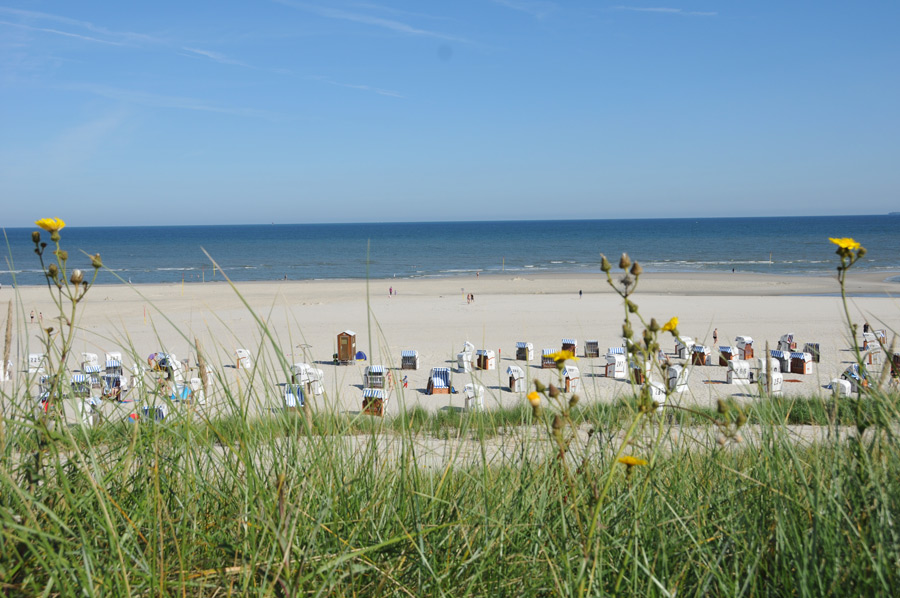 It's only a few minutes' walk to the village of Spiekeroog, so we made our first stop at the Kurmittelhaus, roughly in the middle of the village. Here we provided ourselves with some information worth reading about the island, plans for the footpaths, some of which are beautifully situated in the middle of the otherwise protected dunes. Of course, our way first leads us to the beach, because the desire to see the endlessly long, white sandy beach was huge.