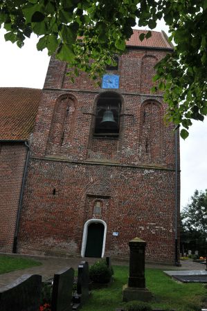 Immediately after entering the church complex, which in typical East Frisian style is slightly above the normal level of the landscape, the viewer notices the similarity to a fortified church, which in the typical style of construction hardly shows any openings on the ground floor.