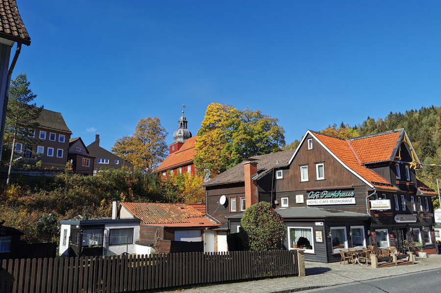 In the meantime we have tried various tours by bike coming from the Prahljust campsite in the direction of Altenau, some of which were quite adventurous to ride because they were very narrow, steep and curvy, but we had no problems with our equipment (HNF Nikolai XD 3 All Terrain and MTB) . Today, however, it should only go to the center of Altenau, because the well-known circular hiking trail "Altenauer Runde" was on our list.