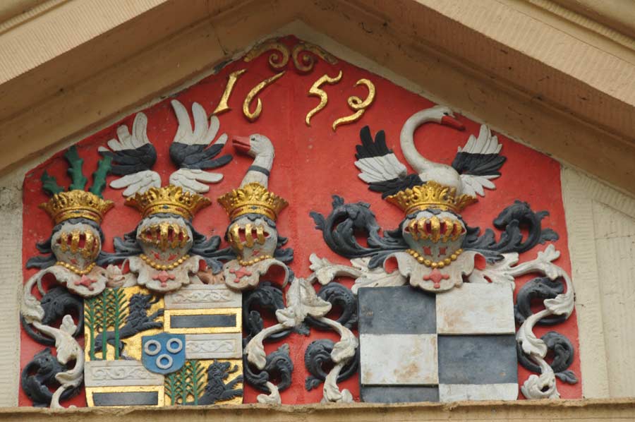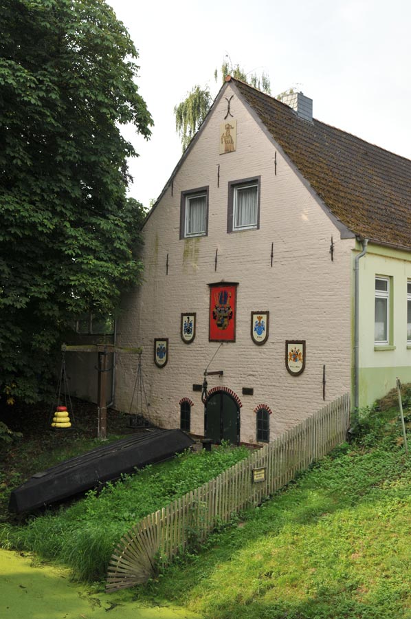 The historic weighing house is located directly on the sluice. It was used to weigh all goods traded at the sluice harbour in order to determine the taxes to be paid to the ruling von Gödens family. These taxes were an important source of income for the von Gödens family. The family coat of arms of Franz Ico von Frydag is now located on the weighing house.