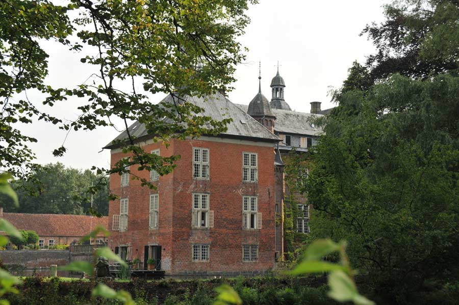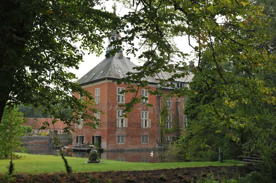 Gödens Castle itself is a clinker brick building in the Dutch Renaissance style, typical of this landscape, completely surrounded by a second, inner moat. There is only a small courtyard in front of the main entrance and a small garden at the rear of the building. Coats of arms and other ornaments can be seen above the entrance area to the right of the tower. Since the castle is still inhabited by a member of the von Wedel family, only a few rooms are open to the public, and even then, only during public events. Perhaps the most famous room is the so-called State Hall, with its depictions of Greek mythology. Today, the castle is managed by the Gödens Castle Cultural Heritage Foundation and is a listed building.