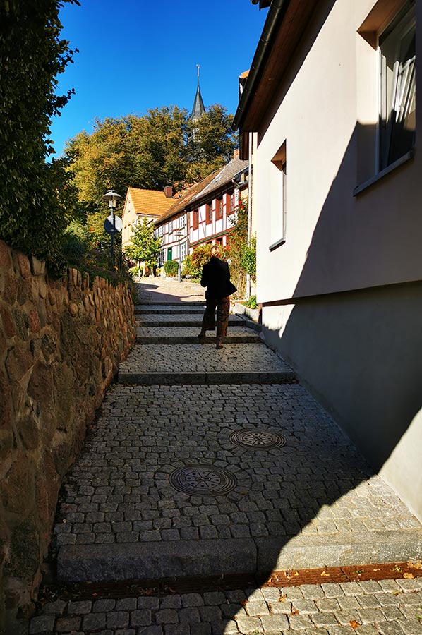 We stroll a little through the streets in search of a café and then decide to take a walk along the Sternberg city wall, which still almost completely surrounds the city. This is how we come across the Mühlentor, which is the remains of a larger city gate. It was destroyed in 1629 during the Thirty Years' War, partially rebuilt in 1839 and extensively renovated in 1998.