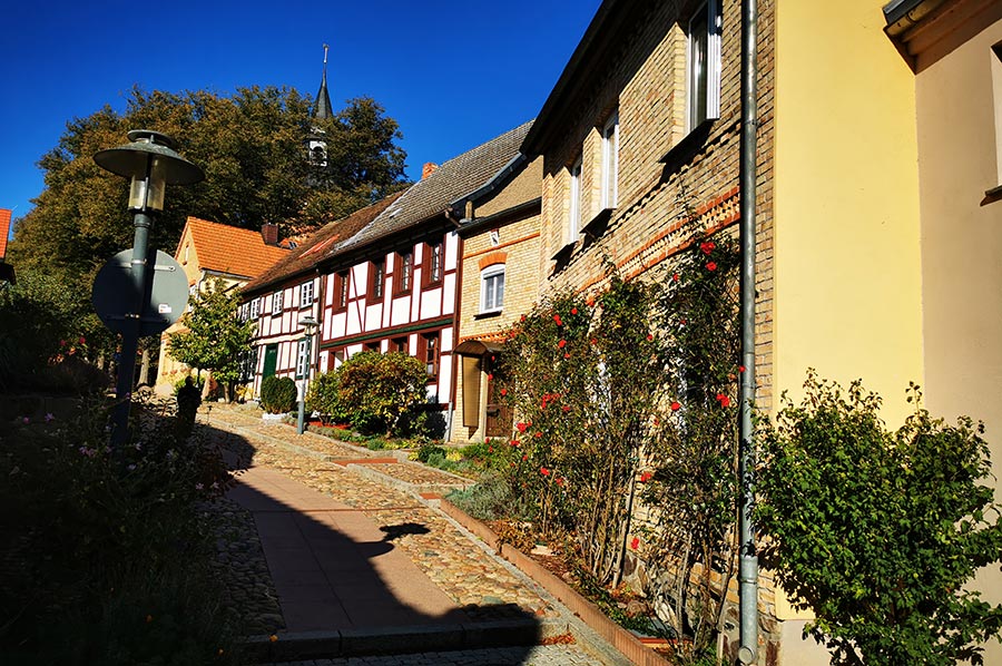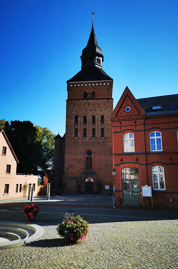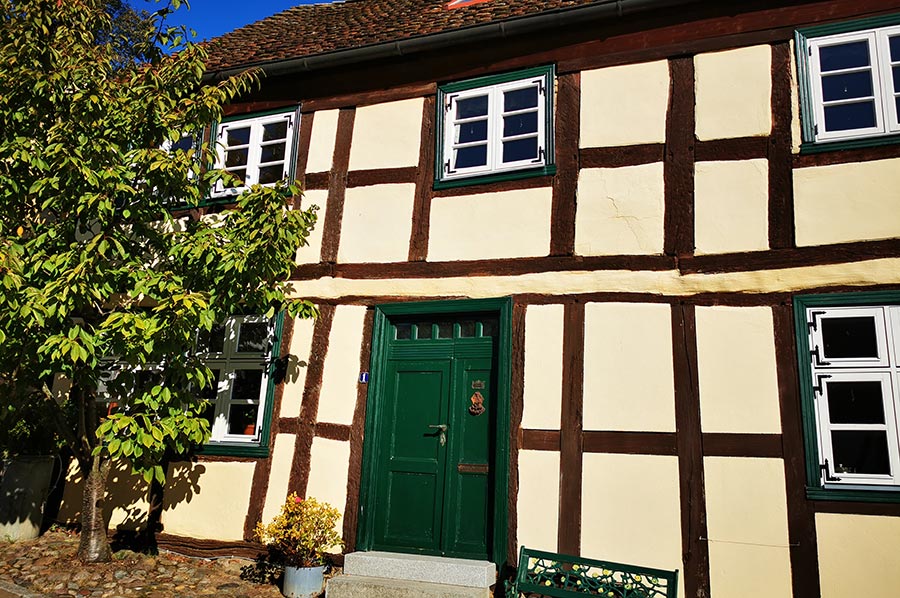 On the way to Wismar, we finally wanted to visit the town of Sternberg, whose inviting parking lot on the wall directly below the striking city wall on the road through the town indicates an interesting old town from afar. No sooner said than done, and we were already on our way to the old town, and the passage through the city wall/city gate into Mühlenstraße already aroused great expectations, as we came across the first, well-restored and flower-decorated half-timbered houses right on the street. Directly after this on the left side of the street is the Sternberg local history museum with 14 exhibition rooms on the prehistory and early history of the town with a collection of examples of the “Sternberg cake”.