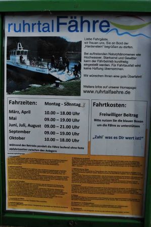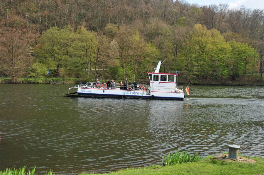 Once again on the way between the lock Herbede and the castle ruin Hardenstein on the Ruhr Valley cycle path, the ferry Hardenstein forms a possibility to cross the Ruhr, whereby the ferry closes the gap in the strongly frequented bicycle net along the Ruhr.