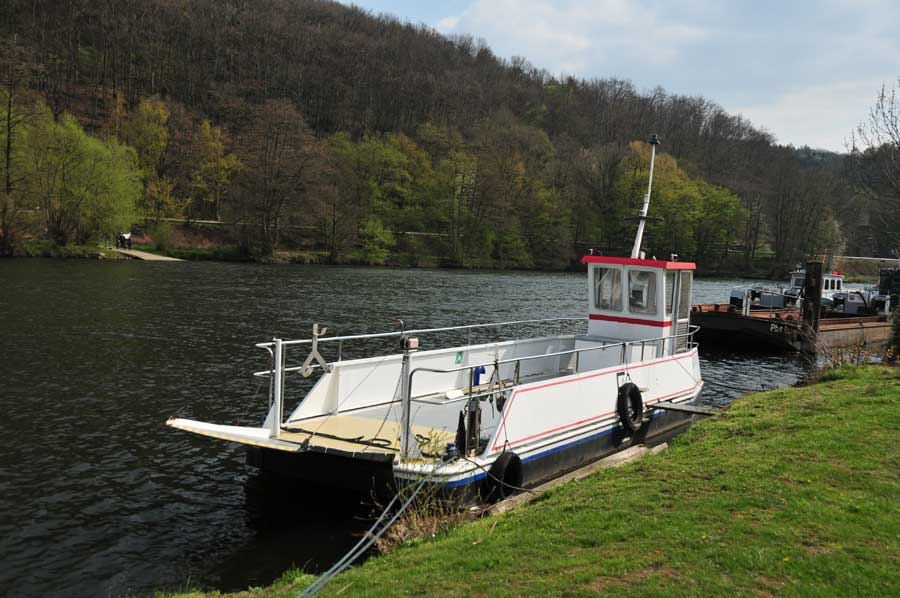In discussions with the operator, we had learned that initially a small ferry had been in use for years. With the increase in the number of cyclists, such a high utilization had been achieved that even waiting times at the ferry had resulted. The time had come for a larger ferry. As early as in 1883 already, there was a connection via the Ruhr by rowboat at this point. In the fifties of the last century, boats man Rosendahl recently brought day trippers across the Ruhr.