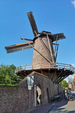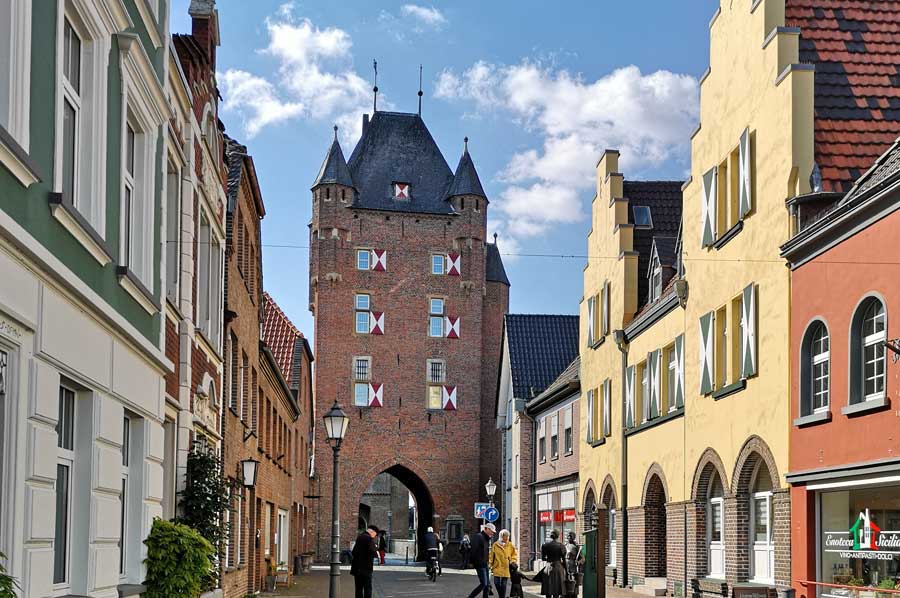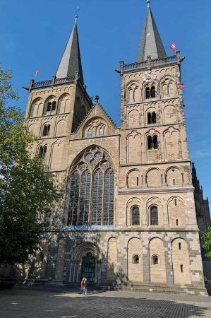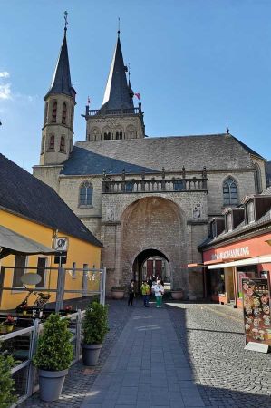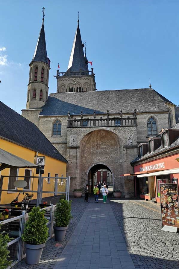 The gothic St. Vitus Cathedral with the Abbey Library and the Abbey Museum, which exhibits rich church art treasures and documents from the history of the cathedral, bears witness above all to the medieval heyday of Xanten. Built from 1263, this is considered the "largest cathedral between Cologne and the sea". The cathedral, the Klever Tor, the Kriemhildmühle and its counterpart, the Siegfried Mill, as well as the Karthaus and other historic buildings characterize the image of the medieval city center. From the former fortifications of the city a stone tower on the west wall, the sea tower, a round tower on the west wall, the pig tower and a round tower on the north wall have been preserved, which were mostly remodeled during the 18th century. The central gate, built in 1392, bears witness to the former division of Xanten into the northern and southern parts of the city. Some parts of the Abbey immunity Bishop's Castle and of the wall have been preserved from the 10th century. Built as a cornerstone of immunity, the 11th-century Romanesque tower is part of the Xanten Marian School.