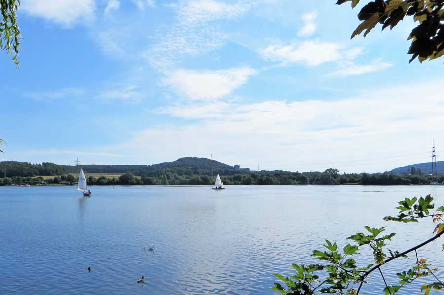 From Witten you first roughly follow the course of the Ruhr upstream to Wetter. Here is a nice overview of the rest of the hiking route from the Harkort Tower. You pass the Harkortsee (the Volme flows into the Ruhr above the lake) and cross the Ruhr in the process. Now you get to the Ennepe-Ruhr Valley, the northeastern part of the Bergisches Land.