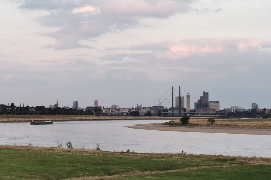 The days at the trade fair during the Caravan Salon in Düsseldorf are long and exhausting, so after the hectic day's events it is good to end the day with a walk along the Rhine.