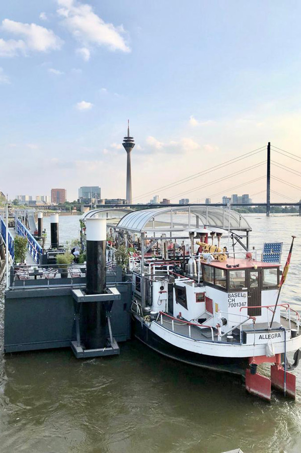 Today the Dusseldorf casemates are the epitome of the hospitality of a vibrant metropolis on the Rhine with an impressive, unobstructed Rhine panorama. It not only attracts large crowds of Düsseldorfer inhabitants to marvel, walk, linger and enjoy, but also guests from all over the world. In a Mediterranean and often sun-drenched ambience, visitors can stop off with a view of the Rhine and the skyline of Oberkassel opposite, relax and let themselves be pampered gastronomically in the midst of the historic surroundings. Below the so-called level clock is the maritime beer garden of the "White Fleet", one of the most popular meeting places on the Rhine promenade. All year round you can enjoy local and international cuisine, cocktails, sundaes, high-quality wines, coffee variations, cake specialties and the most popular Rhenish beers on the terrace.