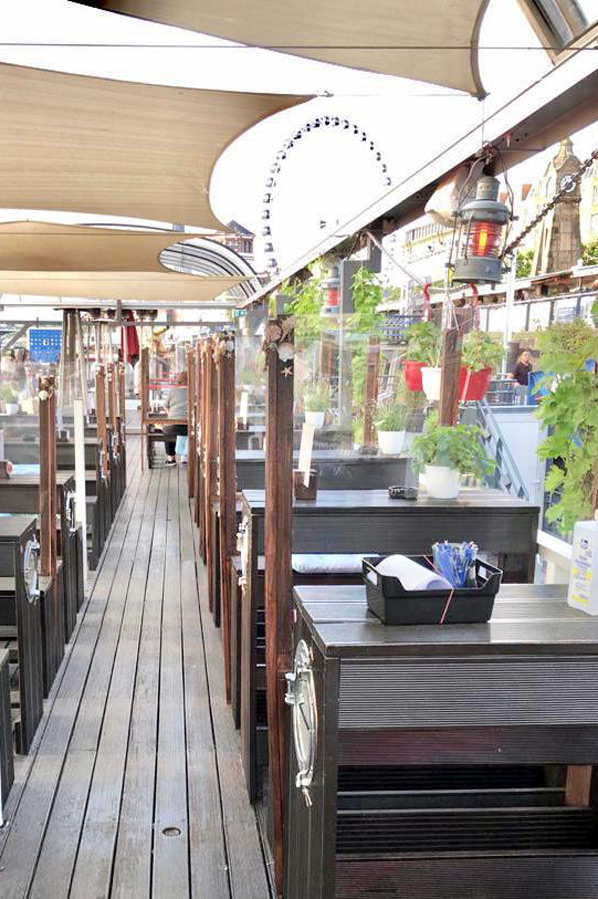 It is only a few steps to the permanently moored restaurant ship "Allegra" (translated the "cheerful one"), a former cargo sailing ship with a wonderful open deck.