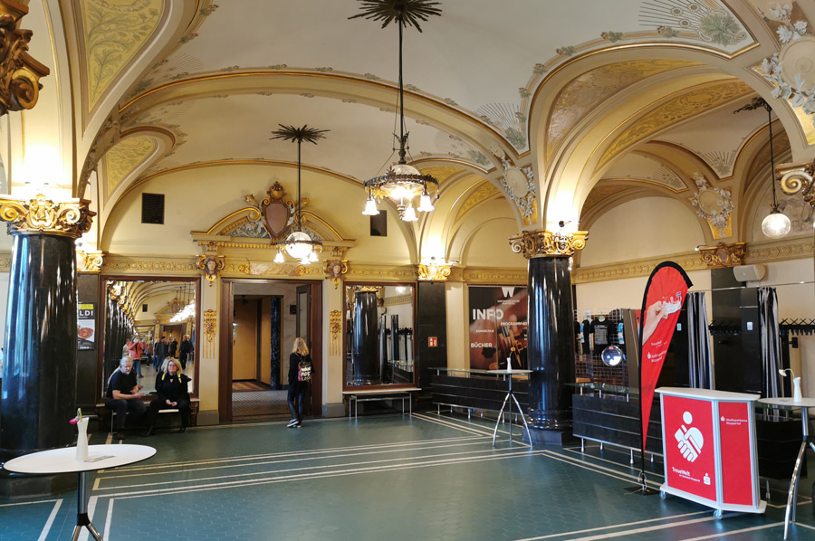 Even the first look into the anteroom amazed us, no question. The Great Hall was understandably still closed. Time enough to deal with the history a little. Until 1894, the site on which the so-called historic town hall is located today was privately owned by the Küpper family. In 1831 Abraham Küpper took over the old tavern on the Johannisberg, in whose "banqueting hall" there was room for around 1,000 people. The concert evenings that take place there can therefore be regarded as a cornerstone of the musical tradition on the Johannisberg in Wuppertal.