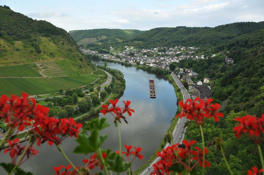 We used the eastern bank of the Rhine to Boppard and then took the ferry across again. This time it was the ferry that amazed us, because only 6 vehicles could be taken per tour, and the vehicles had to be parked across the ferry. But that wasn't really a problem either, so some photos were possible again. From Boppard we then went up to the Hirschkopf, because we had chosen the path to the Moselle past Udenhausen. So we drove up to the Moselle from above just before the entrance to the Moselle bridge near Löf, which gave us a great view of the river. Basically, we had favored the visit to Eltz Castle, but wanted to walk from Moselkern. Due to the advanced time (the walk takes about 40 minutes), we decided to use the rest of the day for the castle and the city of Cochem.