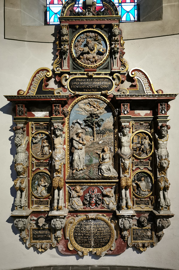 Above the portal in a niche is a figure of Saint Castor by Gottfried Götting.