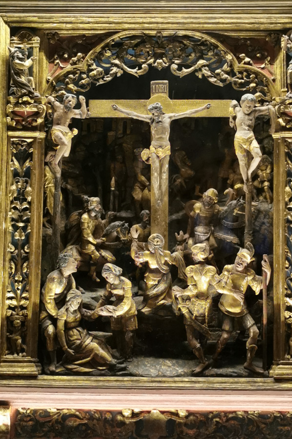 The west portal was created by Matthias Schmitz in 1859 and the figurative tympanum above it by Joseph Fuchs in 1866.
