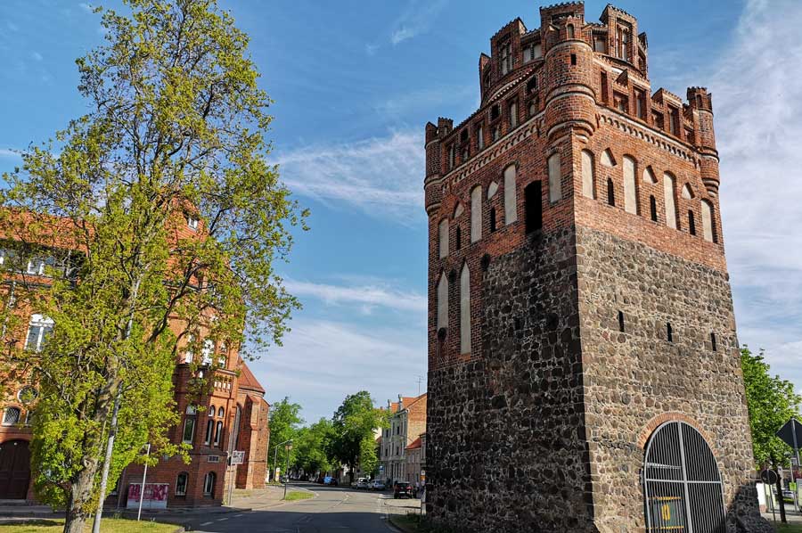 The Uenglinger Tor, next to the Tangermünde gate, is one of the still preserved city gates of Stendal. It was built in the late Middle Ages between 1450 and 1460. Originally Stendal had several gates and towers, some were demolished in the 18th century. The Uenglinger Tor is considered one of the most beautiful city gates in Northern Germany. Its magnificent 15th-century construction served as part of the north wall as the defense and representation of the rich medieval city. The tower opened the way to the west lying Uenglingen, hence its name. Since its restoration in 1989, the 27.5 m high tower has been accessible again in summer and offers a comprehensive view of Stendal through its battlements on its viewing platform.