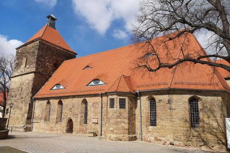 We drive to the centre of the small town, which seems extremely lifeless, not at least because of the immensely high vacancies in buildings. Sights include the ruined castle and the Hedwig-Courths-Mahler archive in the Nebra local history museum with an exhibition on the Nebra sky disk and the Bronze Age, of course currently closed. Striking for us, the numerous apartment buildings with their Renaissance portals that are absolutely worth seeing, but also vacancy here.