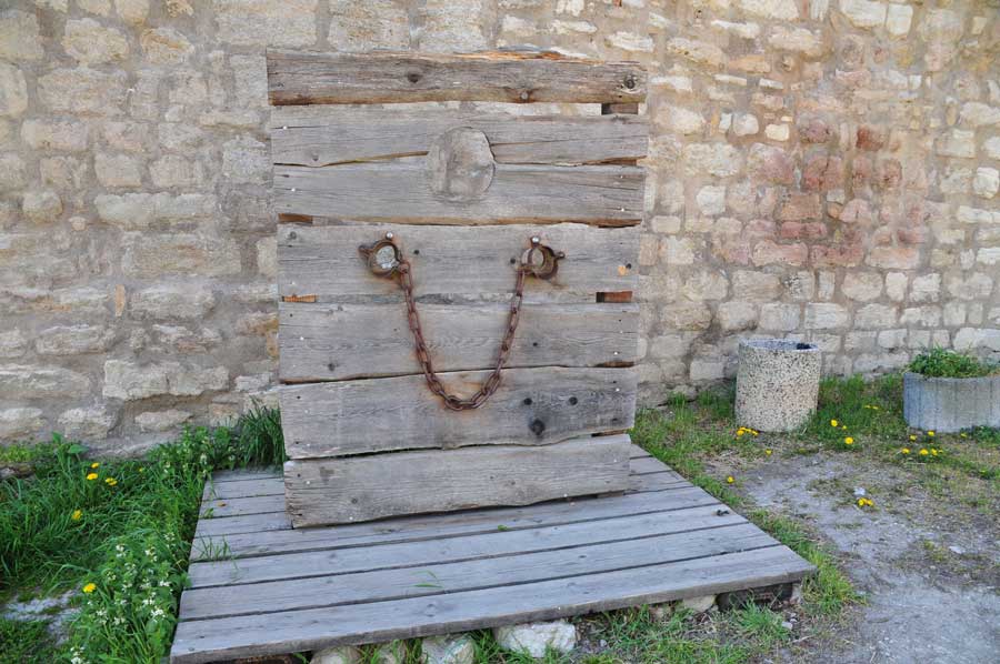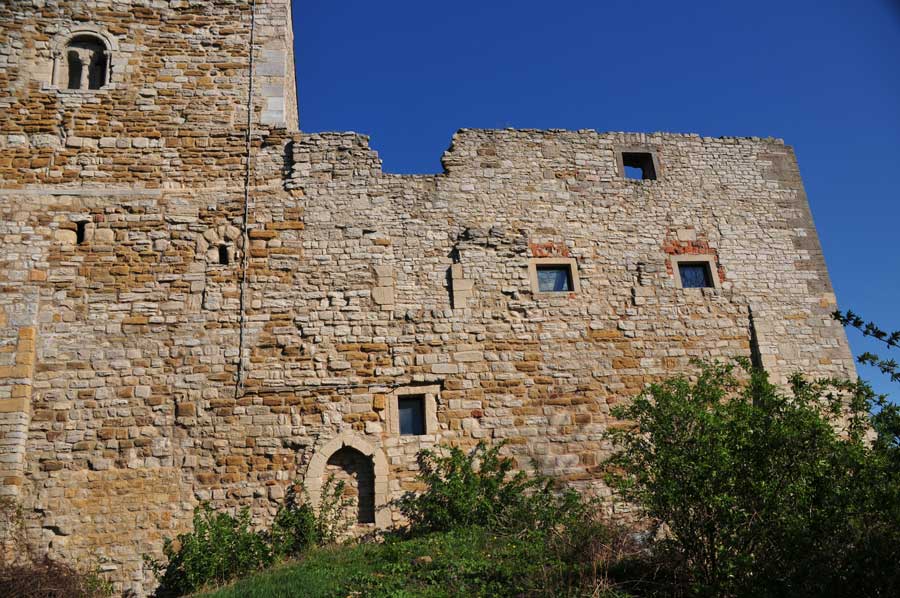 Inside the keep, the barrel vault has an opening by which the prisoners were released into the prison. The tower door is at a height of nine meters.