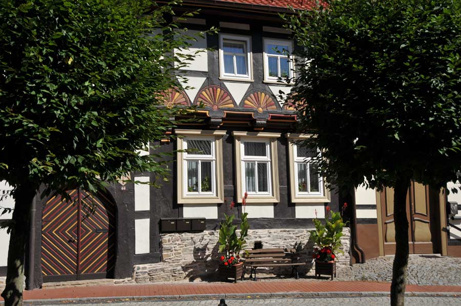 At Seesen we left the BAB 7 in the direction of Osterode and Bad Lauterberg according to our planning. The predominantly 4-lane expressway 243 quickly brought us to Nordhausen to the BAB 38 motorway in the direction of Halle. Just a few kilometres later we left the Autobahn at the Berga exit (already within sight of the Kyffhäuser monument / Kaiser Barbarossa) and now we drove on the L236 towards Rottleberode. It is just 17 kilometres from the motorway exit to the centre of Stolberg. We also found a parking lot in the middle of the village, since only a few tourists stayed in the village.