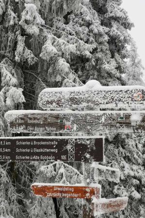 If you are looking for a connection between physical activity and literature, you should start from small town Elend, which we have chosen as our starting point this time. The course of the Teufelsstieg on this side of the Harz Mountains was modeled on the path that Goethe's protagonists Mephisto and Faust chose to climb the Blocksberg, a local term for the Brocken. Whether these events could also take place in winter remains to be seen. We started in Elend am Talwächter, a 200-year-old spruce near the train station in Elend, where there is plenty of parking space available. The hike is accompanied by boards that provide information about Goethe's Faust and the Blocksberg.