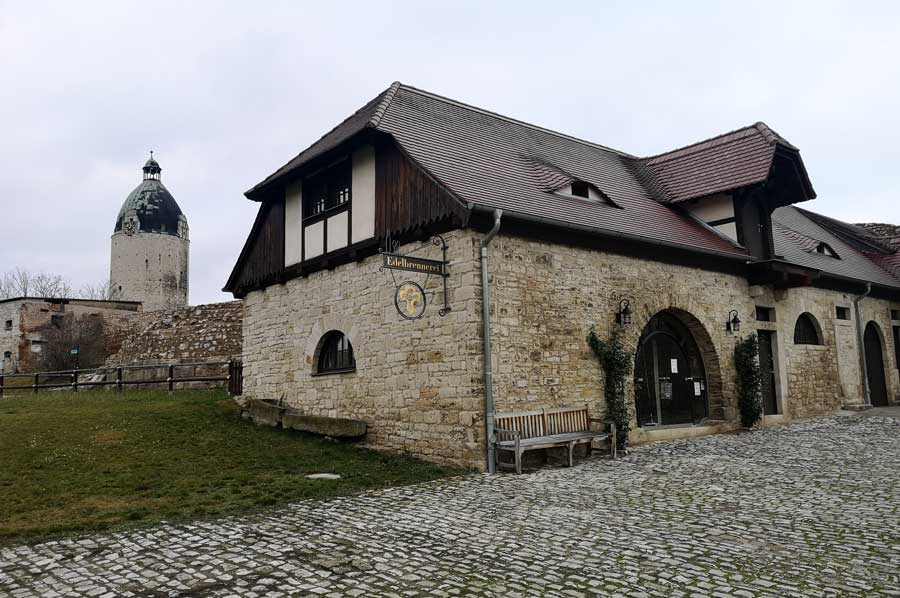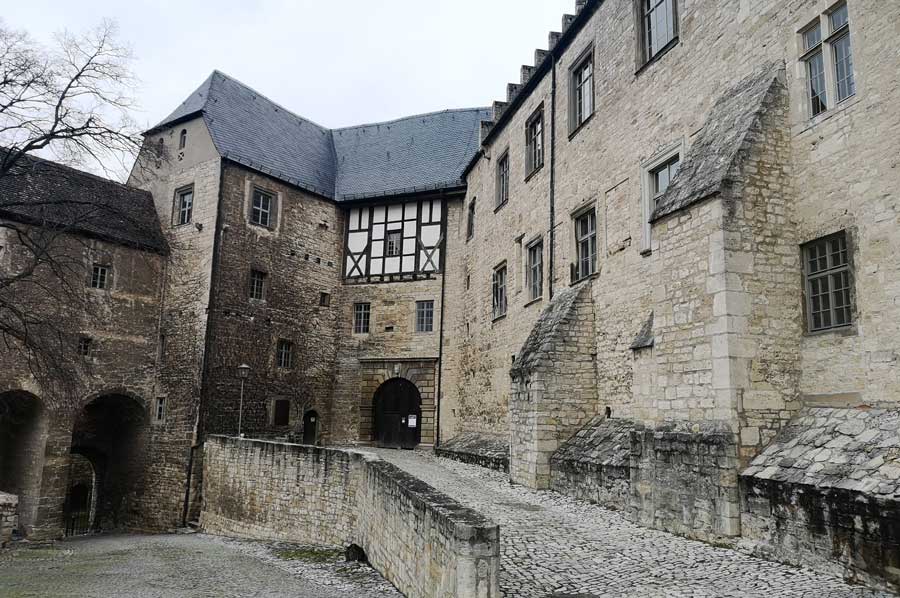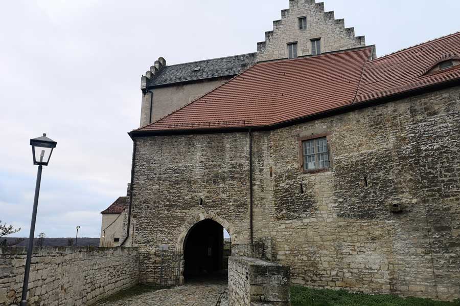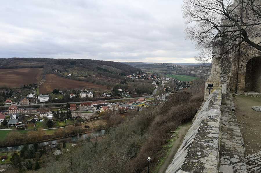 So our first way towards the city center led us over the Unstrut bridge with its lock and the imposing fish ladder, before we went up to the ridge to the castle, past the museum of Turnvater Jahn. However, the rather washed-out path up to the castle via partly strongly offset steps should be approached with caution.