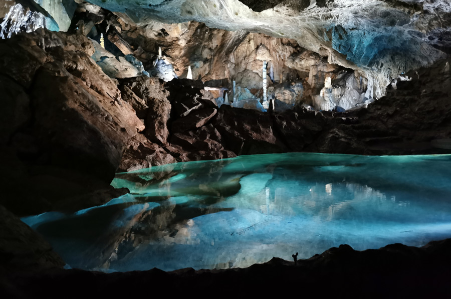 A visitor magnet that is also interesting for children, which gives many details about the cave and its history in almost hourly tours. Understandably, photography is not permitted in the cave, so there are mostly only photos of the park-like area in front of the entrance area, which, however, with its carved wooden figures is also suitable for shortening the waiting time until the next guided tour.