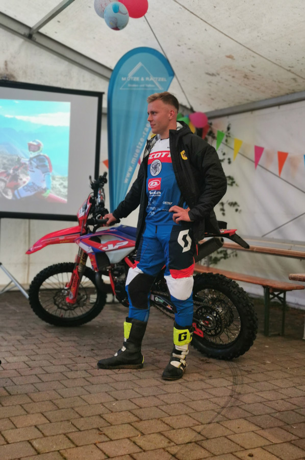 Tim is now a Super Enduro pro, drives the American AMA Championship and the World Championship (6 races in Europe and Israel) as a works driver for the Italian manufacturer Beta. Not only was he the only motor sports enthusiast to be included in the Bundeswehr sports promotion group, Beta brought him to the USA and there the Billrodaer hit like a bomb with his skills. With these top results as the final proof of his ability, his contract was extended by another year, especially since he had become junior vice world champion very early on.