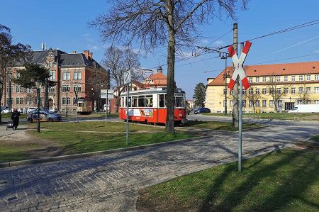 The route, which is still in operation today and is currently only around 2.9 kilometres long, runs from the main train station to the northwest corner of the historic old town, circles it along the former wall ring to the north and east and ends at its southwest corner. The city's central tourist attractions of the market, old town and cathedral are therefore only bypassed, which represents a significant disadvantage in the network structure. The entire ring was once around 5.4 kilometres long. Currently, only a little more than half of the former ring line is still in operation, including the Hauptbahnhof–Salztor section. On part of the former outer ring between the former Salztor and Moritzplatz stops, the rails are still preserved under the asphalt pavement of the streets and could therefore become the subject of later track archaeology, which is actually a shame.