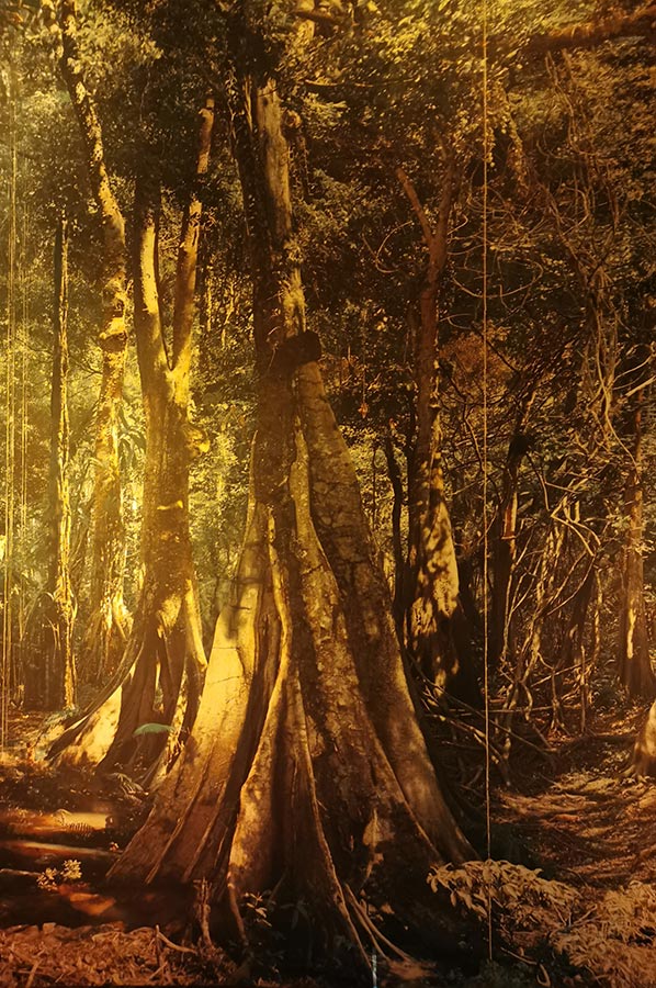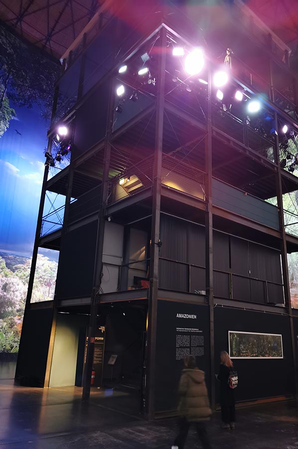 On an image area of around 3,000 m2 and a height of around 27 meters, the cylindrical circular painting shows a hyper-realistic, life-sized condensed scene from the Brazilian jungle on a scale of 1:1.