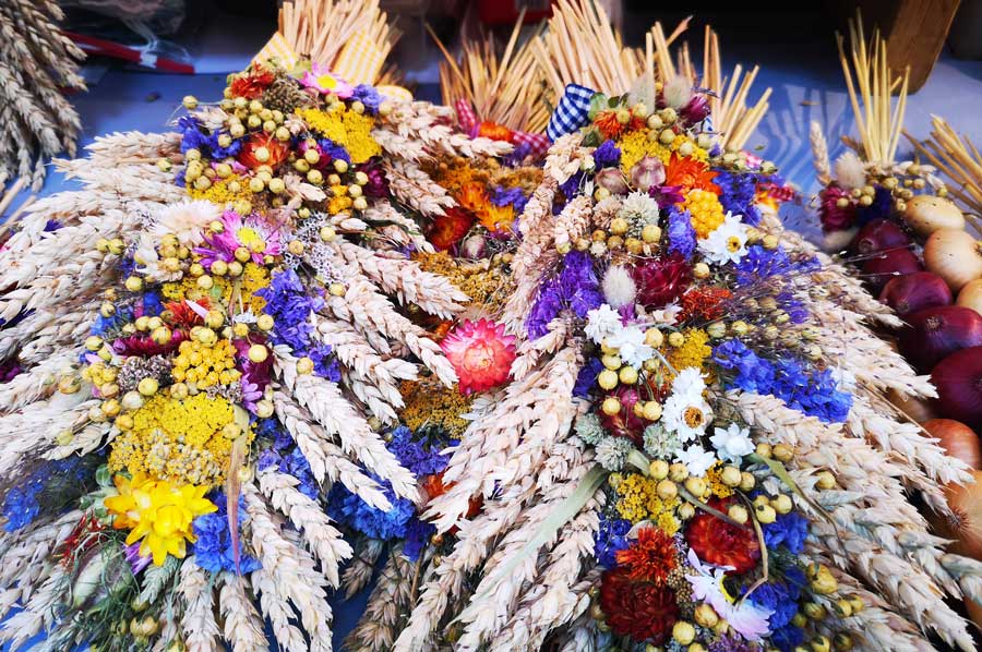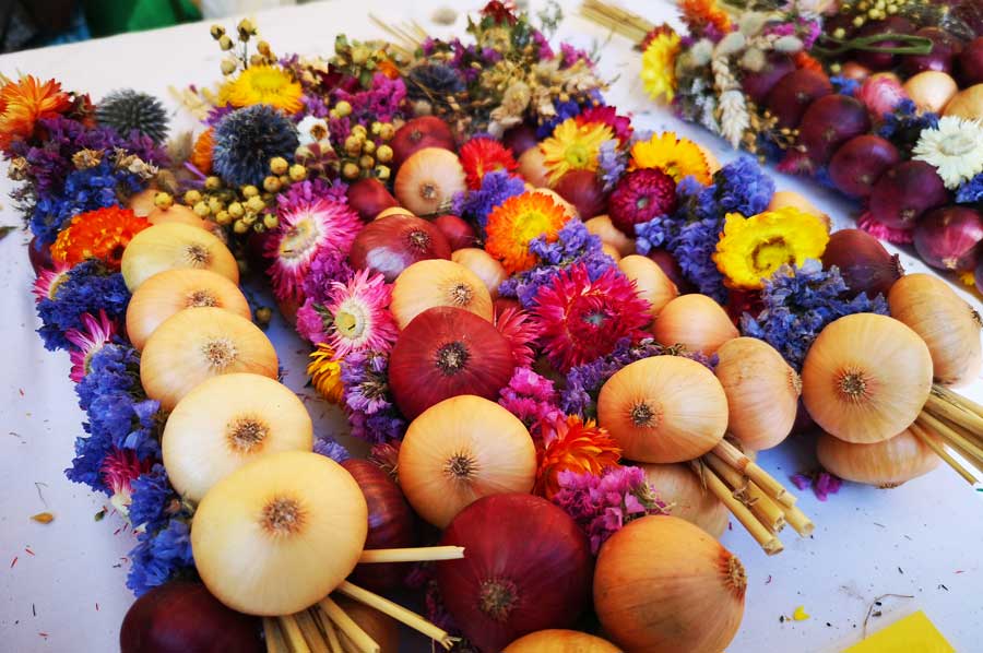 On Wednesday and Thursday, October 6th and 7th, the onion farmers enrich the weekly market on the market square with onion panicles, dried bouquets, fruit and vegetables.