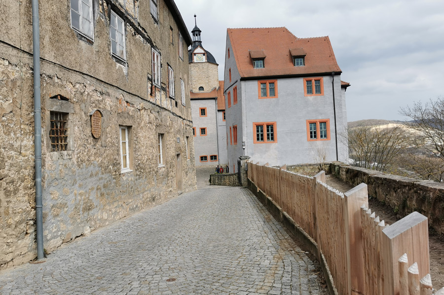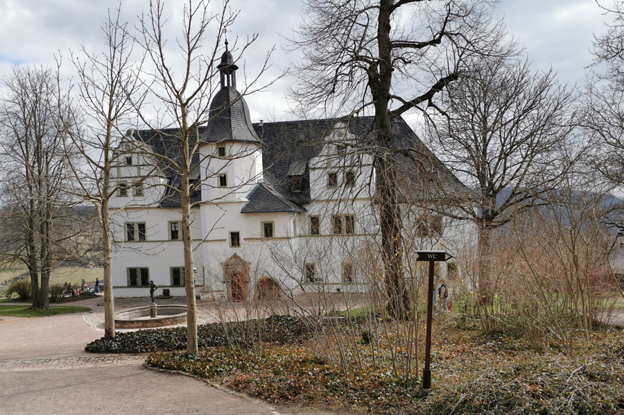 The Renaissance castle, also known as Stohmann'sches Schlössschen or Goethe's castle, is the southernmost and second oldest of the 3 Dornburg castles. It was built in 1539 by Volrad von Watzdorf in place of a 14th-century manor house. The Lords of Thüna and von Eberstein came into possession of those of Watzdorf through inheritance. Due to the excessive debt of the owner of Watzdorf, the castle was sold to Duke Johann Wilhelm von Sachsen-Weimar in 1571. After his death in 1573, the castle was inherited by his son, Duke Friedrich Wilhelm I of Saxe-Weimar. Around 1600 the castle came into the possession of the official locksmith Wolfgang Zetsching and remained in the possession of this family for 4 generations.