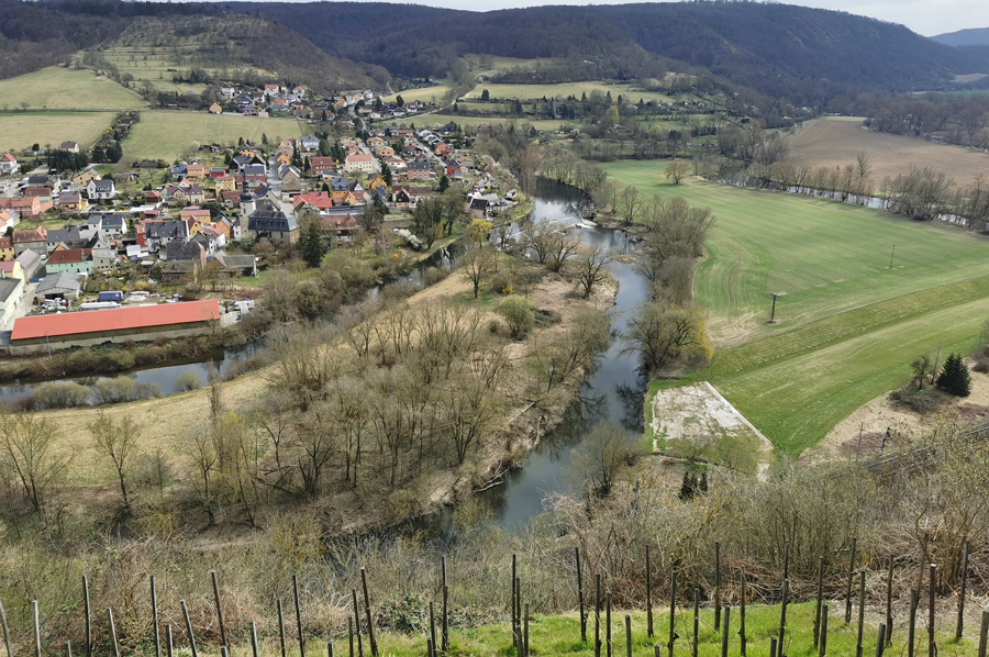 The city of Jena is only about 10 km away, Naumburg 20 km and Camburg, the next city down the Saale, is only about 6.5 km away. As always, we did a little research this time and came across a circular hiking trail that led us largely along the Saale, albeit high up. The last part of the hiking route, which leads along the steep slope to Dornburg Castle, is particularly exciting, where a number of other highlights awaited us.