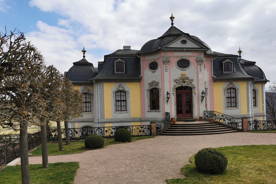 The rococo palace is the middle and youngest of the three Dornburg palaces. From 1732, Duke Ernst August of Saxe-Weimar-Eisenach had 21 town houses demolished as part of his plans for a large army show in the Saale valley based on the example of Augustus the Strong's pleasure camp in Zeithainer and the rococo palace built in their place by the chief master builder Richter. The predecessor of today's castle was built on the foundations of the clerk's house.