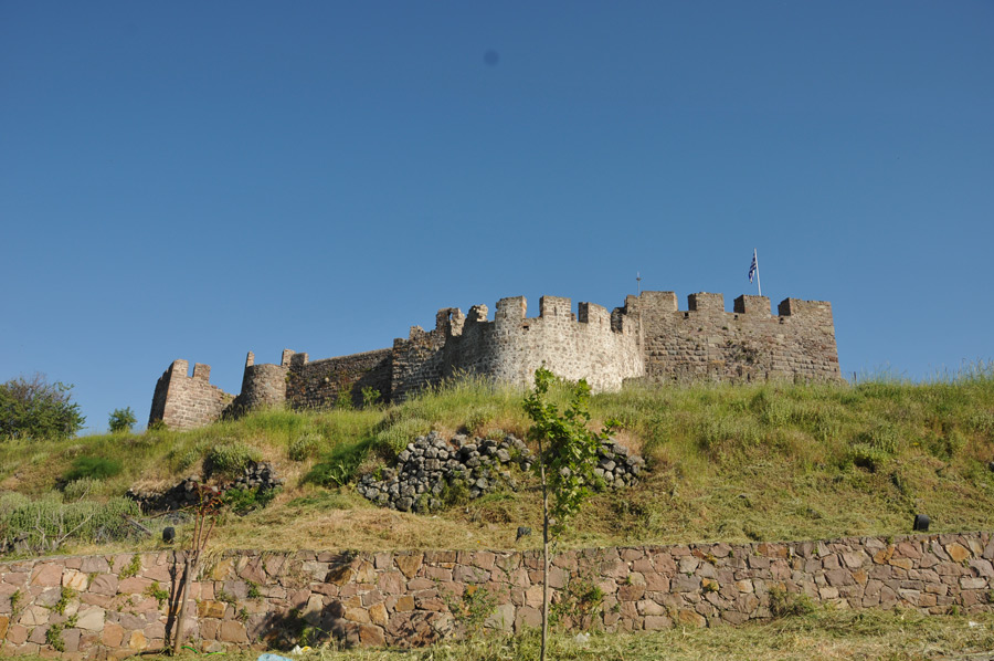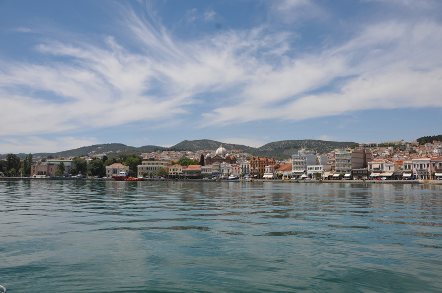 Only when you climb the medieval castle do you have a view of the Turkish coast.