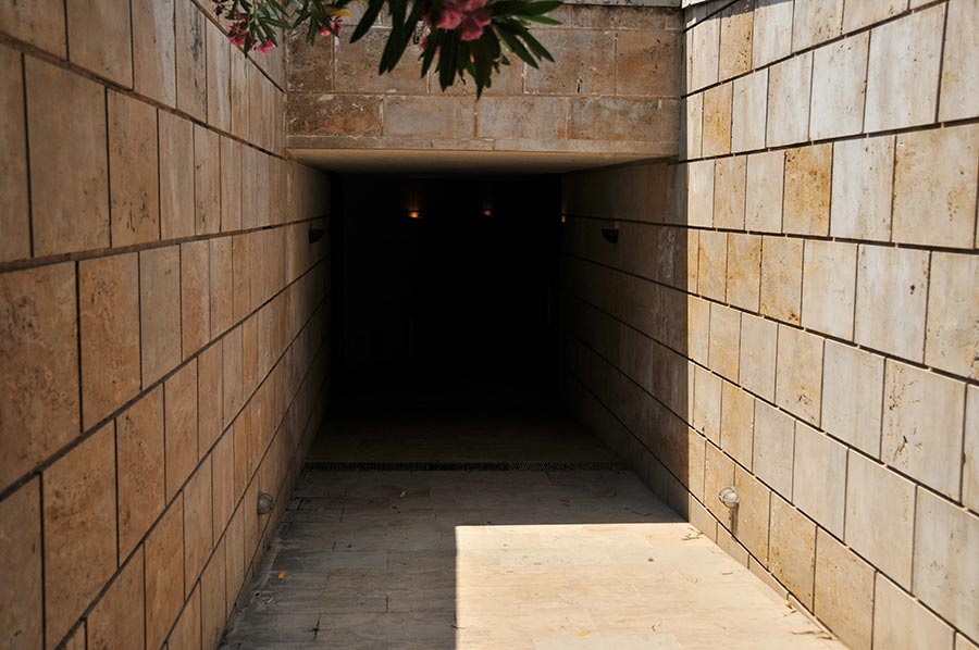 A modern designed, park-like entrance leads to the Great Tumulus and thus to the entrance of the museum, where there are four grave sites with a diameter of 110 m and a height of about 12 m. Three tombs are richly painted and provided with many grave goods, the fourth had been badly damaged and discovered robbed.