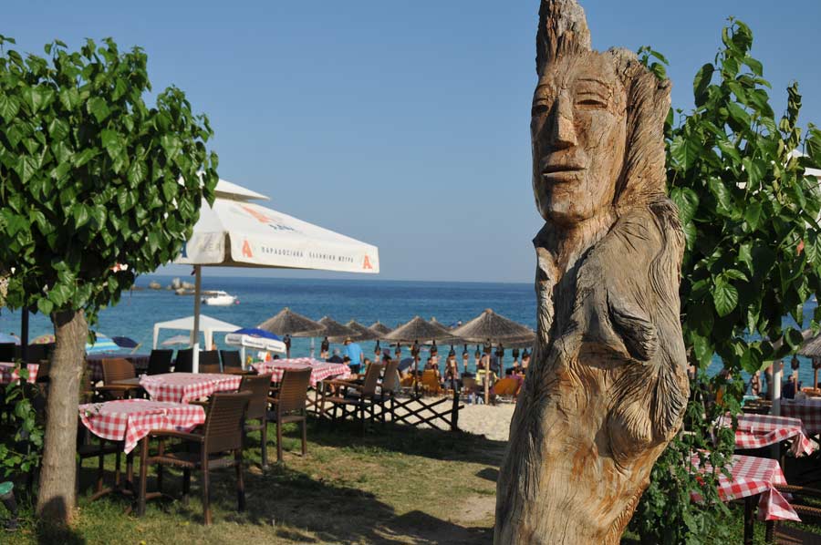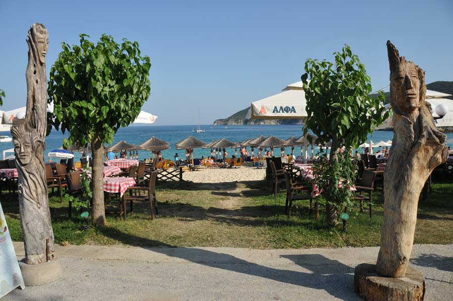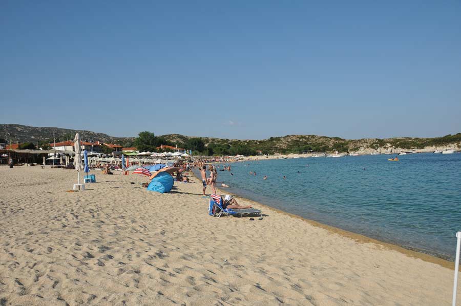 Kalamitsi is located almost at the end of the Sithonia peninsula, a small town with some sports and fishing boats in the picturesque natural harbor area. The waterfront is just modernized with a paved "sidewalk" along the narrow street, which is lined with beach bars and beach restaurants. All manageable in size, so that you learn to know each other quickly and you are recognized and welcomed the next morning too. There are few, even too small hotels, so the number of beach visitors is quite manageable, even now during the high season.