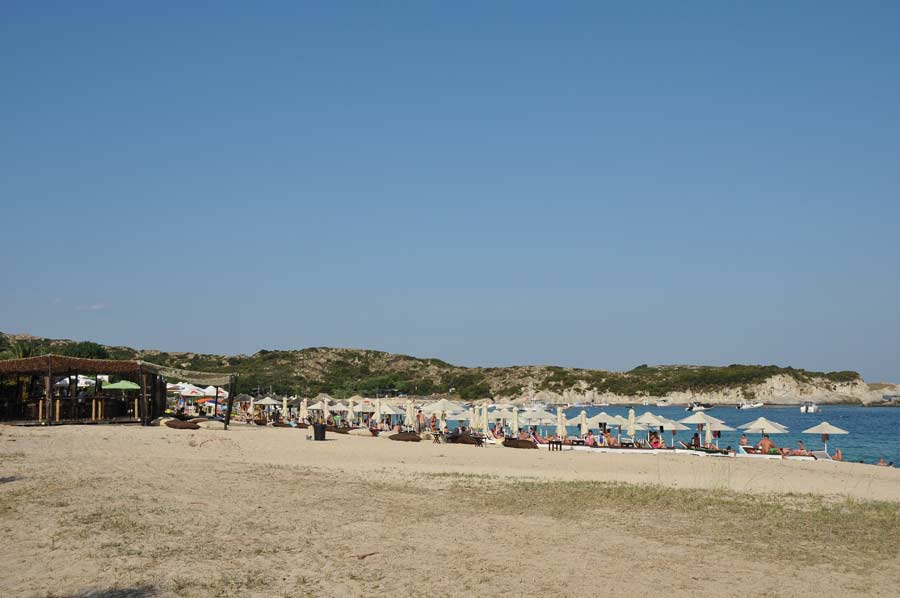 The day of our current explorations on Sithonia was nearing its end, time to take care of accommodation for the night. From Andrea and John we have got the tip to use the campsite at the beach boulevard of Kalamitsi.