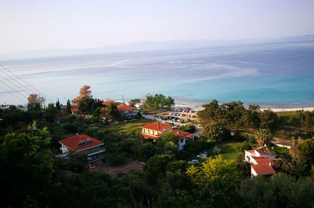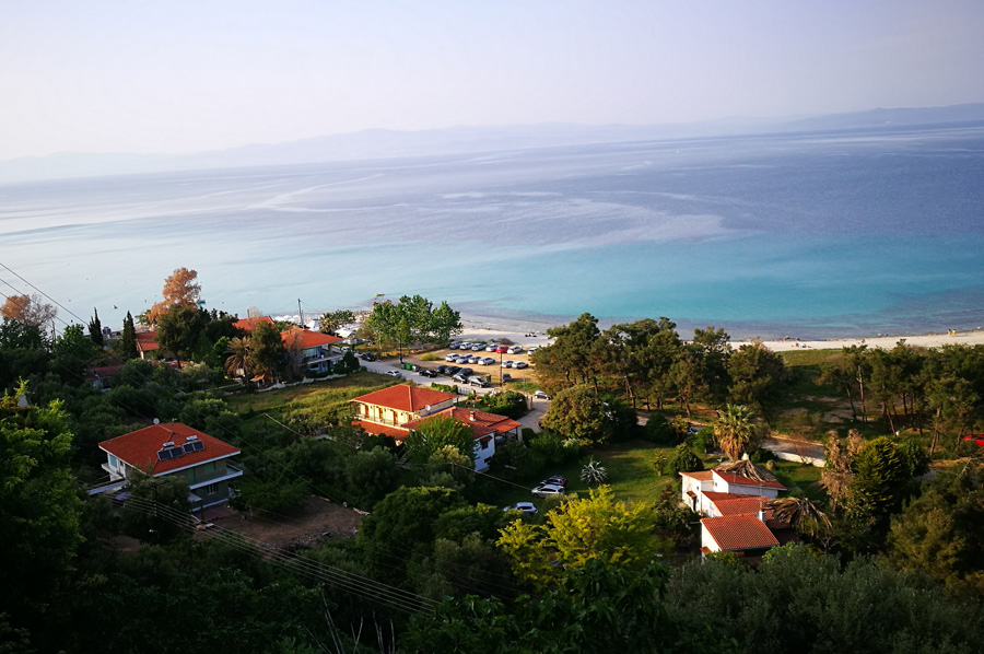 Afytos - great view from the restaurant terraces to the bay of Kassandra