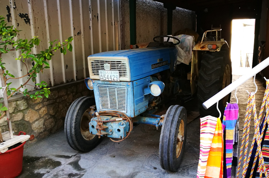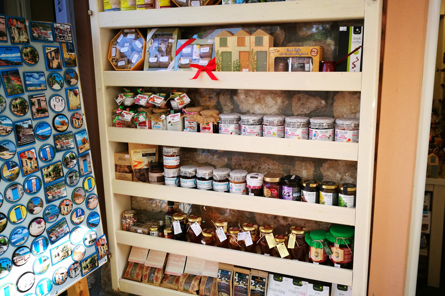 In search of a bakery, which offers the delicious Kourambie cakes all year round, we had found Gkemitzis in Afytos during the internet research, who ran a small eco-shop and invited us to his home village.