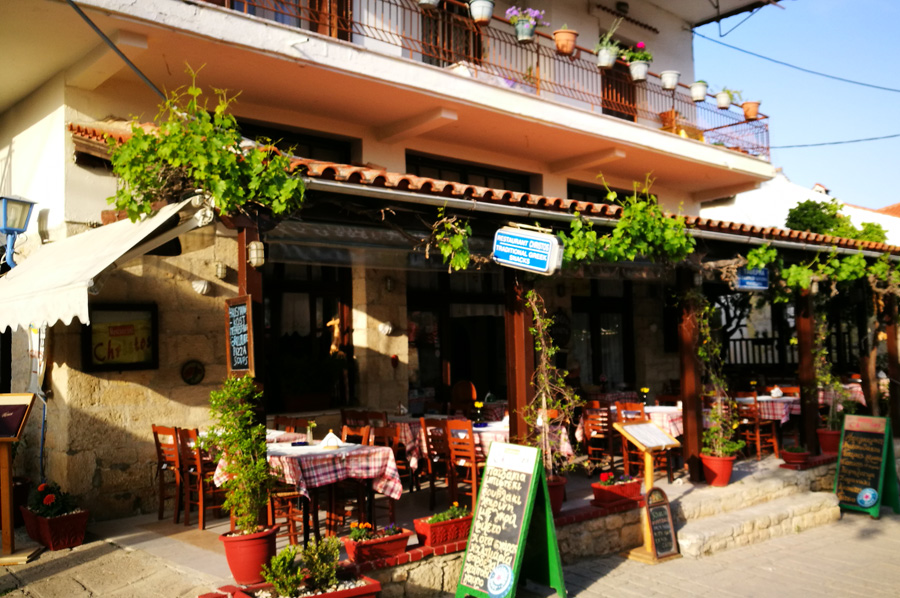 There are numerous restaurants in the streets in the center of Afytos. On the one hand simple, but good Greek cuisine is offered, but there are also the fast food restaurants, which are everywhere in Chalkidiki. Pizza is always on offer. You will not find the big fast food chains. In the center of Afytos there are numerous shops, but all are tailored to the needs of the tourists.