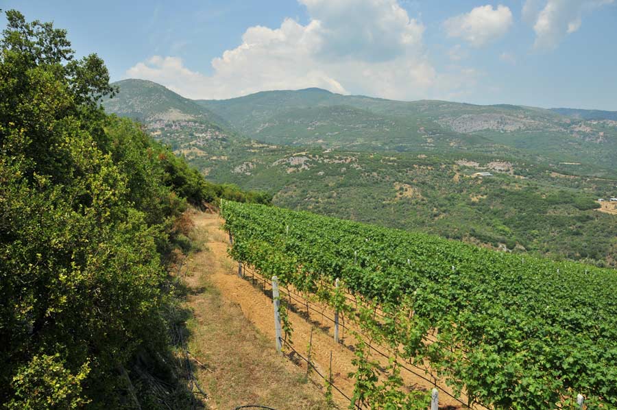 Situated at about 500 meters above sea level the site is considered one of the best wine-producing regions of the mainland. The wines from Olynthos, Acanthus, Stagira, Mendi, ... belonged to the top wines of Greece in ancient times. From Chalkidiki the wine culture spread throughout Greece and in large parts of the Mediterranean. Preferably, the specific local, very ancient red grape variety Xinomavros is grown drawn together with the endemic plants in Rapsani, Stavroto and Krassato, in mixed culture and is pressed together.