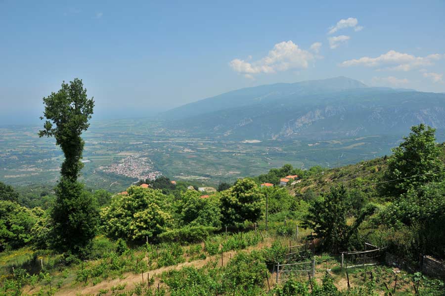 Rapsani, today's small town on the southern slope of Mount Olympus, was probably founded in the 10th century from four smaller villages. According to a legend Rapsani was a very beautiful and energetic woman who united the four small villages to a larger and stronger unit. Six watermills from the 12th, 13th and 14th centuries show that Rapsani was a flourishing Byzantine city, which has a more than 900 year old history. From the "Platia", the village square of Rapsani, you have a beautiful view to the top of Ossa / Kissavos, the sea and the Pinios Delta. Several wine shops are distributed in the place, which also invites you to wine tastings.