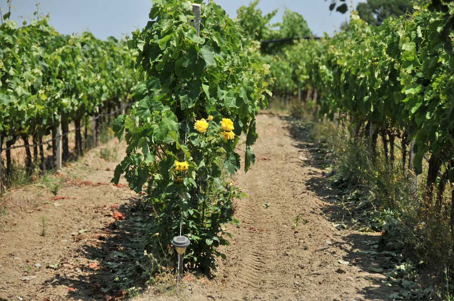 The vineyards are located at an altitude between 800 meters and 250. In Rapsani the soil is mainly composed of iron-containing shale, which is poor in organic substances. The high iron content regulates the water capacity of the soil, whose structure can penetrate deep into the subsoil, the vine roots. The slope of the vineyard ensures the water flow during the rainy winter months. Sand and clay in the subsoil also provide the hot summer for sufficient water supply for the plants.