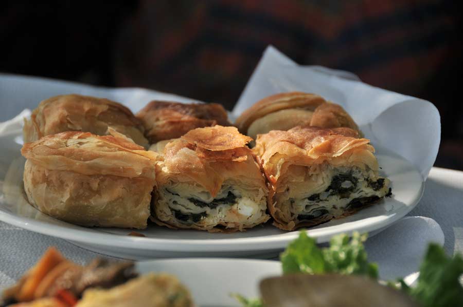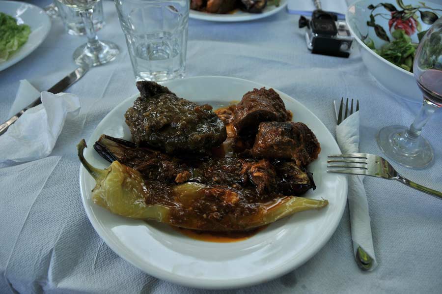 The grape juice from the slopes of Mount Olympus, from the indigenous varieties Xinomavro, Krasato and Stavroto is very powerful, well structured and can be stored long. The Englishman Edward Clarke described the Rapsani already in 1816 as "the best tasting wine from all over Greece" .1971 was the Rapsani wine region one of the first, which was awarded the title "Appellation higher quality". Since the 18th century the vineyard is the most important source of income of the inhabitants of Rapsani. Unfortunately, the crisis in Greece showed its effects, one possibility to face it is now increasing wine tourism, which is also reflected in the inns of the region: delicious, local cuisine, of which we could be convinced.
