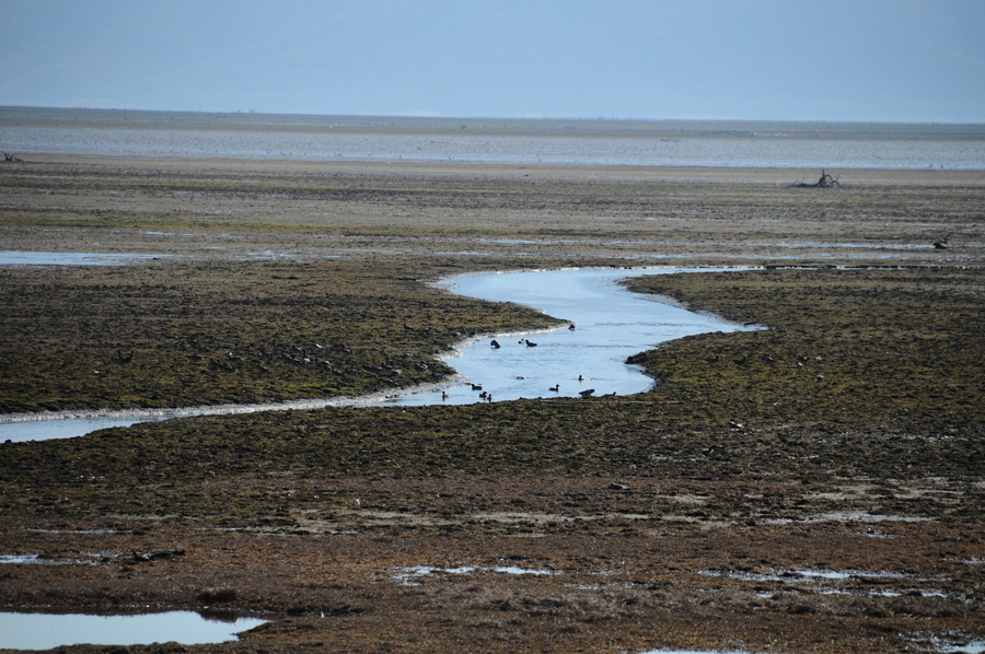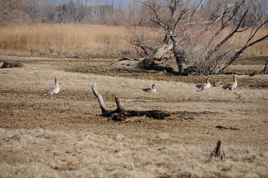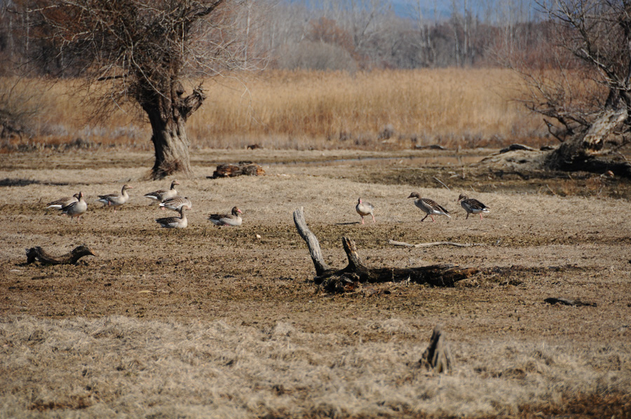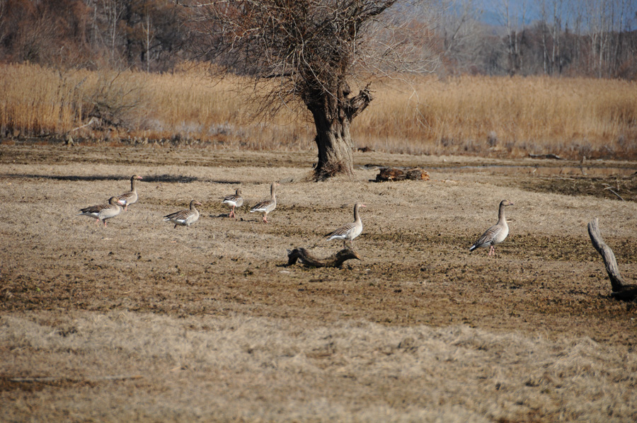 At the moment, the lake shows a very low water level, which is why the water birds are far out on the lake. At first almost unnoticed, we then discovered a group of geese that grazed in the marshes. The low water level is also a big problem for the fishermen, because they must go far out into the sea area to get to their boats. In some pictures clearly to see how far back the water has gone.