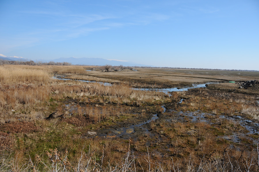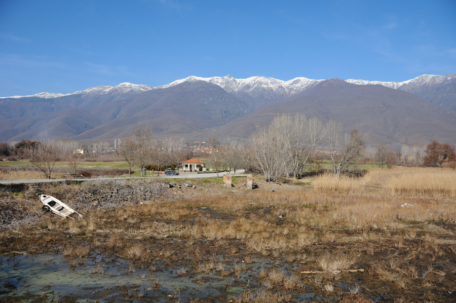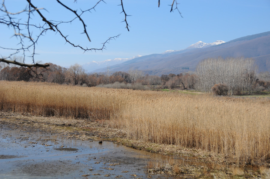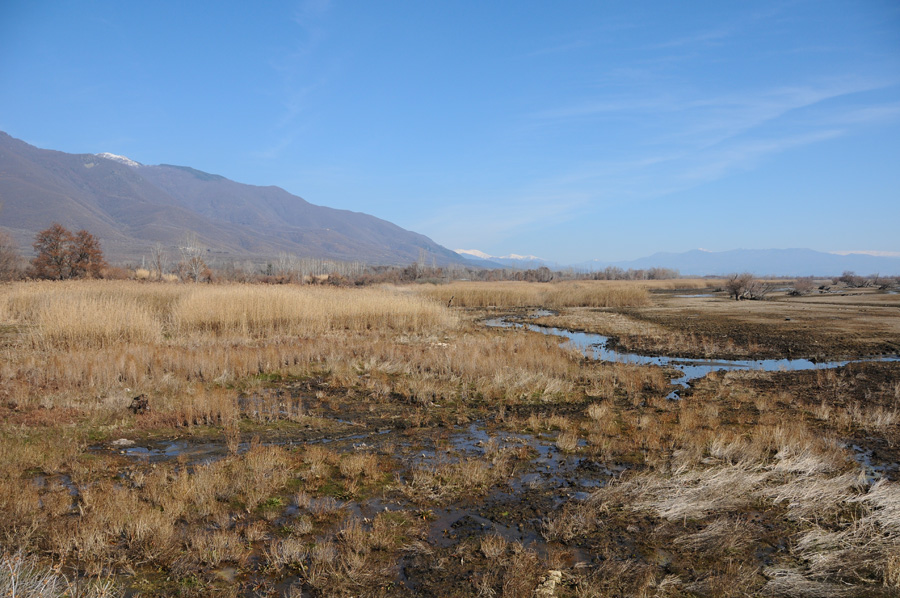 The areas of the river inlets, in particular the Strymonas river, are surrounded by large reed areas that reach far into the sea surface. In the middle of the town of Mandraki, a small road, well signposted, leads to a small concrete path which leads into the wetlands and can be used as a viewing platform into the wetland area.