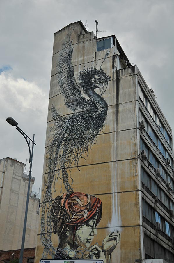 On the one hand, there are the prefabricated buildings so typical of the 1970s, which also dominate the wonderful waterfront of the Thermaic Gulf, and then, in the middle of the canyons, deep excavation sites of ancient buildings from the Roman Empire suddenly open up.